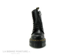 Le lacet arrondi noir traverse 3 œillets afin de fermer les chaussures Dr Martens 1461 blanc verni.