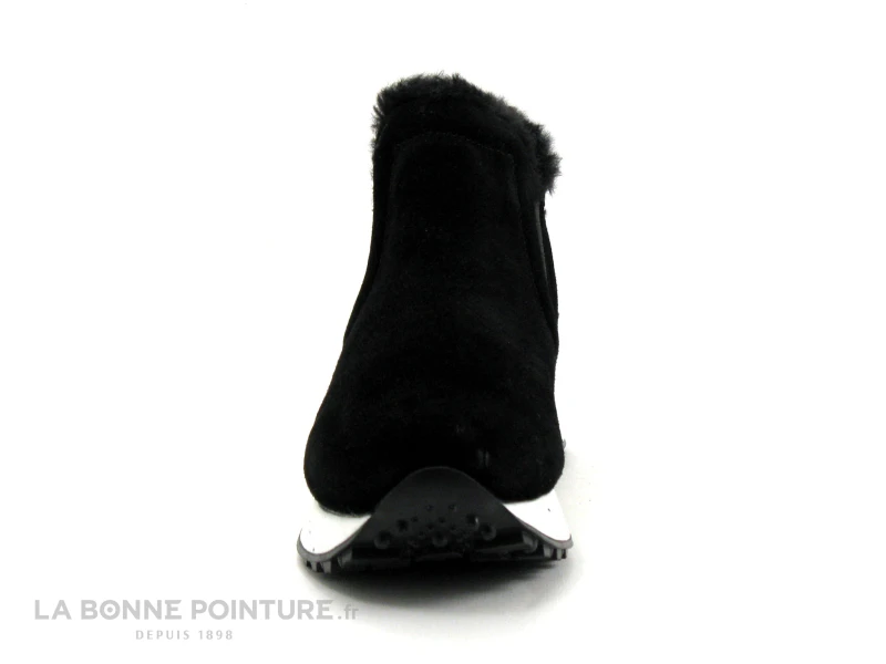 Cette bottine mode Femme Gioseppo Jondal est en cuir veloutĂ© noir, avec deux Ă©lastiques sur les cĂ´tĂ©s qui permettent d’enfiler facilement la chaussure.