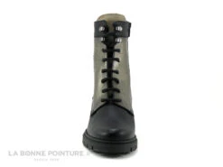 Cette basket montante Femme Ă semelle compensĂ©e est en cuir, combinant des parties noires et taupe veloutĂ©, noir grainĂ©, et bronze mĂ©tal.Â