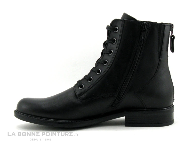 Vous fermerez vos botttines cuir noir Lily Mood Faddy avec la fermeture éclair latérale, le lacet permet d’ajuster idéalement la chaussure à votre morphologie.