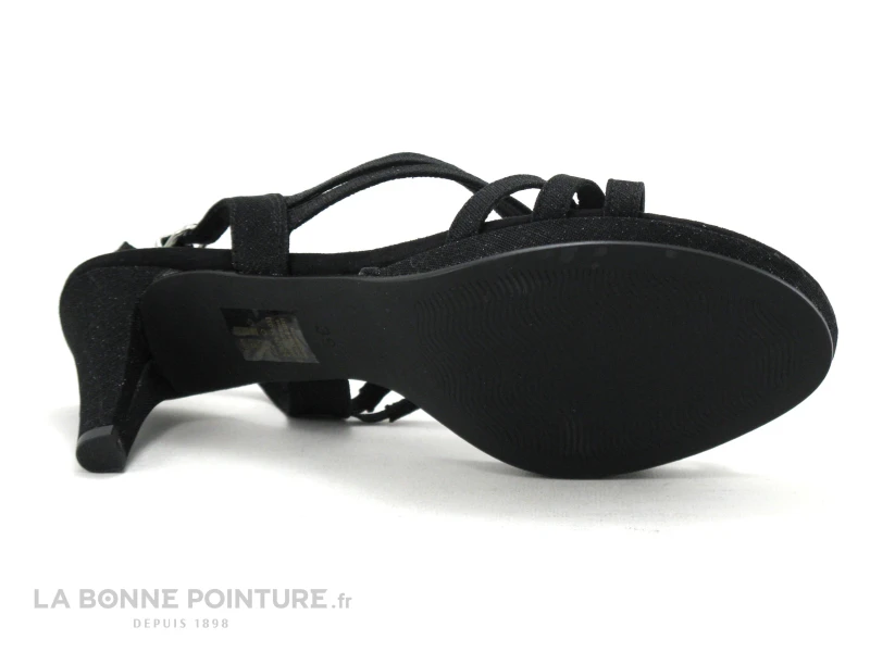 Ce nu-pieds Femme à talon haut est en textile noir pailleté, pour s’associer avec toutes vos tenues de soirée ou de la saison estivale…