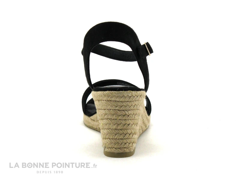 Ces espadrilles compensées noires Tamaris 28300 sont en textile velouté noir, avec la semelle revêtue de cordes tressées.